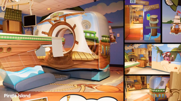 Pensou-se em levar para as as crianças algo mais lúdico, tornar o ambiente mais amigável para que se sentissem à vontade, tornando a experiência dos pequenos pacientes uma aventura. A máquina e a sala foram pintadas, imitando um navio pirata e os operadores foram treinados para lidar com crianças