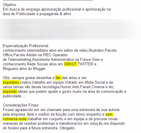 A “saga” dos RH’s continua: erros, observações engraçadinhas, informações incorretas enfim… por mais que se divulgue e as pessoas tenham acesso a informação, modelos de currículo e tudo mais, ainda tem um batalhão de candidatos errando feio na hora de preparar esse documento tão importante e fundamental na procura por um melhor emprego ou uma oportunidade.
