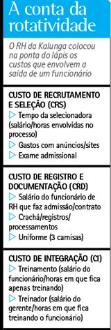 Até pouco tempo atrás, a pressa era o principal fator que conduzia os processos seletivos da Kalunga, rede de papelaria e materiais para escritório. Para suprir a demanda que só crescia, os gerentes das lojas ouviam um candidato e logo o contratavam para o atendimento. Há 25 anos na companhia, Hélio Shimba, gerente da regional de São Paulo, já presenciou situação pior. “No passado, as admissões eram feitas diretamente pelo departamento pessoal, sem a participação do gerente, e o funcionário chegava aprovado na loja”, conta. O resultado de processos acelerados e não integrados foi o aumento do turnover da rede, que alcançou os 58%. “O processo de seleção estava todo errado”, concluiu Márcia Assim, quando ingressou na rede em 2008 para assumir a gerência de recursos humanos. Até aquele ano, não havia um RH estruturado na companhia, tampouco processos de seleção moldados. Embora significativa, a taxa de rotatividade não parecia dizer muita coisa para os gerentes das lojas. Era preciso mais. E Márcia, então, fez as contas. “Mostramos que um processo de seleção mal conduzido eleva os custos da rede”, afirma. Na fórmula, foram considerados os custos da divulgação da vaga, do processo de seleção, da admissão, da integração e do desligamento.