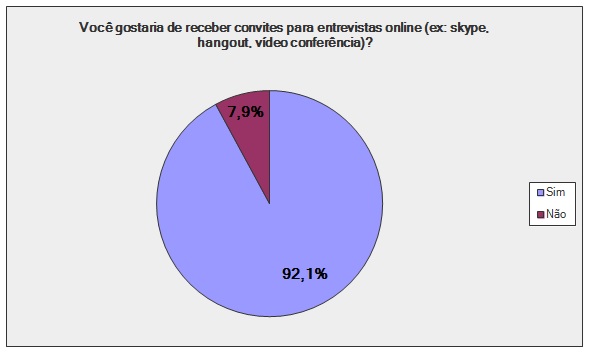 Uma recente pesquisa realizada pela Catho, constatou que 92,1% dos profissionais brasileiros gostariam de fazer entrevista online, enquanto 67,7% das empresas do país nunca utilizaram o recurso.