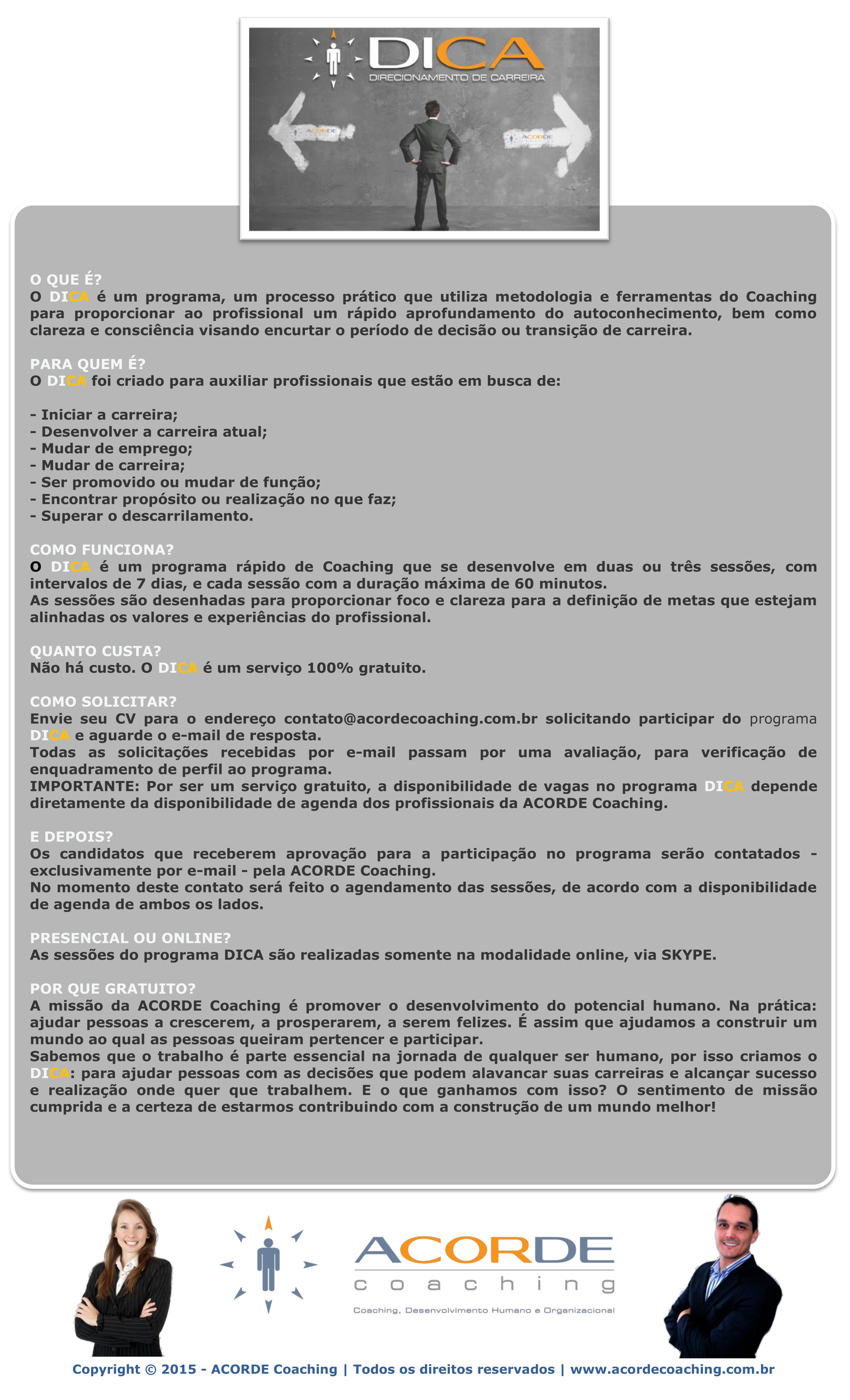 Compartilhamos aqui a excelente iniciativa da Acorde Coaching ao criar o programa DICA.