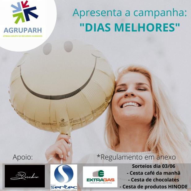 Com apoio do Chef Zochio pães artesanais , SERTEC RH e Grupo Extragás, o Atibaia Grupo de Recursos Humanos e região, promove para seus membros a campanha “Dias Melhores”