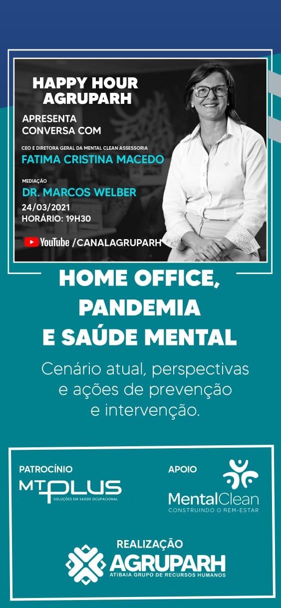 A Associação Atibaia Grupo de Recursos Humanos e Região (AGRUPARH) e a MTPLUS Segurança e Medicina do Trabalho promovem nessa Quarta-feira (24/3) às 19:30 uma conversa com o tema “Saúde mental na pandemia” com uma das maiores especialistas do Brasil sobre o tema: Fátima Macedo.